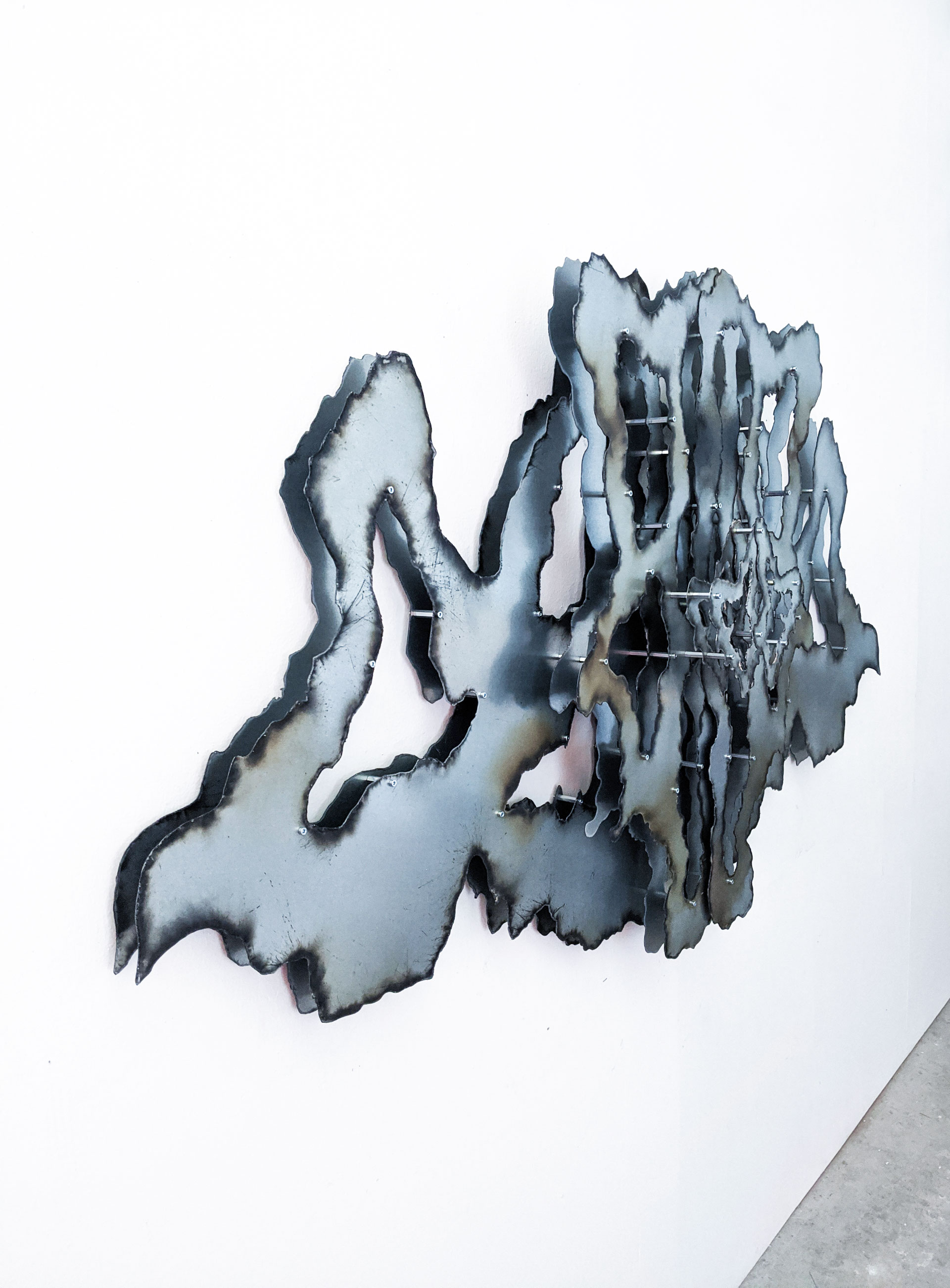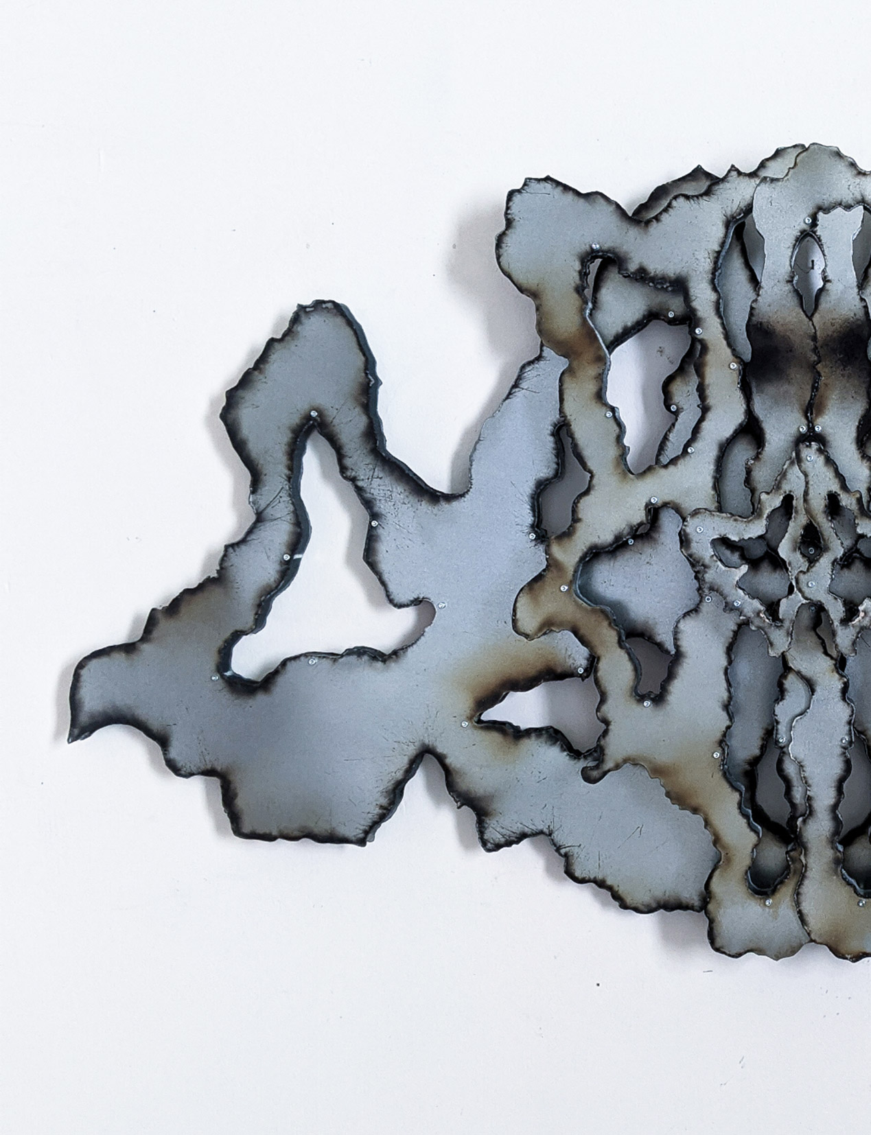 Repurposed galvanized steel, soot, varnish, stainless steel